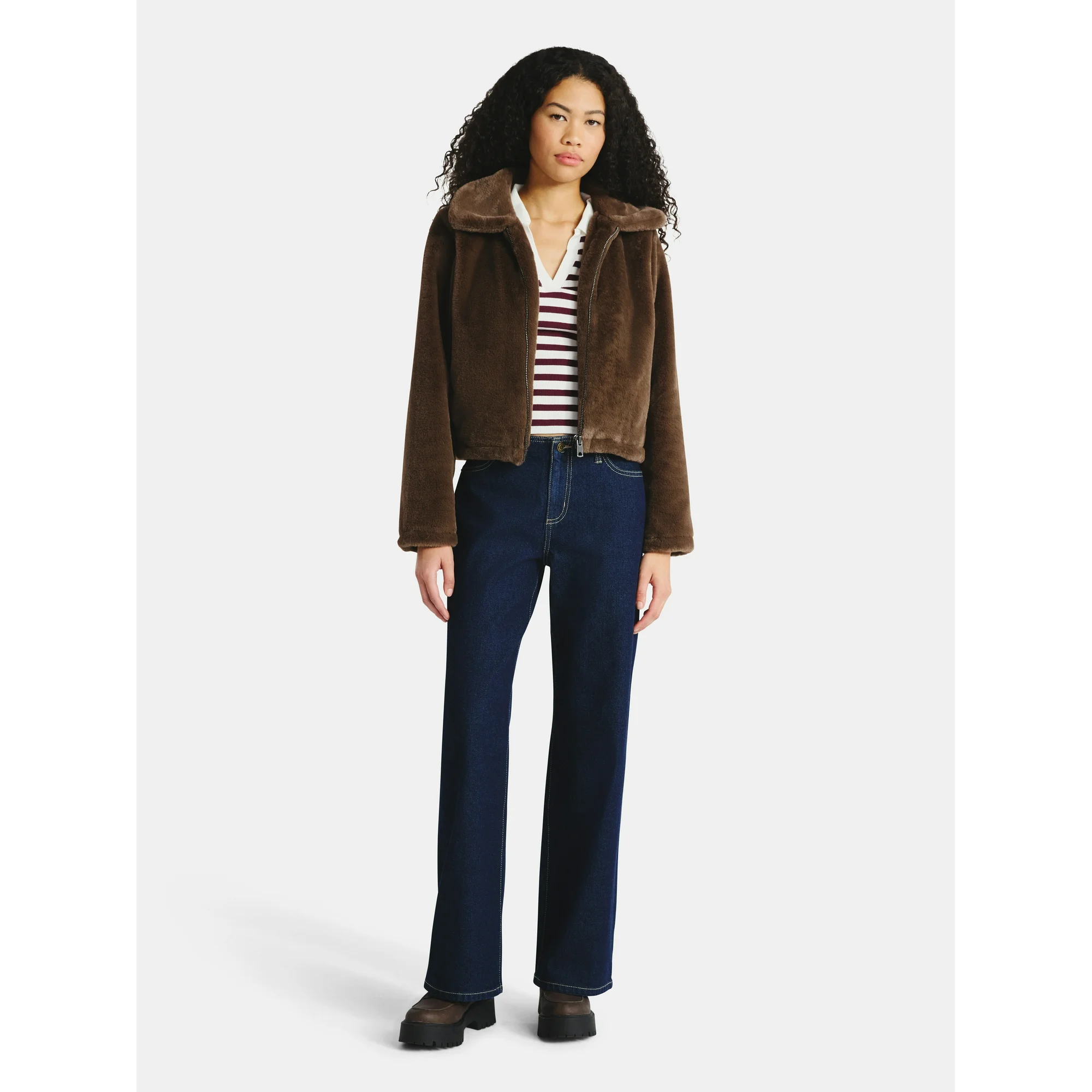 Bundling up in rich, luxurious textures is a winter wardrobe given. And No Boundaries’ Faux Fur Jacket offers a mix of old Hollywood and bohemian energy to give you one of the biggest season’s trends. Finished in ultra-plush faux fur, this jacket features a zip front and on-seam pockets for easy layering and extra warmth. Go casual by pairing this jacket with jeans and your favorite sneakers or with a midi dress and heels for date night. Only at Walmart.